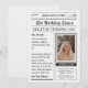 Crea titulares con la celebración de tu cumpleaños número 100 utilizando esta increíblemente única Invitación de Foto Personalizada para Revista de Humor de Periódico que es como un titular de prensa vintage, esta invitación está diseñada para captar la atención y brindar sonrisas. Es la forma perfecta de anunciar tu cumpleaños con un toque creativo y divertido, haciéndolo verdaderamente inolvidable tanto para ella como para él. Con un espacio para foto personalizable en la portada, puedes ser la estrella de tu propia y divertida historia de cumpleaños.