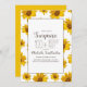Invitación a la fiesta de cumpleaños número 100 diseñada con girasoles amarillos en blanco. El texto es totalmente personalizable, por lo que estas invitaciones pueden diseñarse para cualquier edad.
