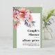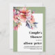 This wedding shower invitation showcases a white frame surrounded by borders in a calming sage green hue and rhododendron branches adorned with peach-pink flowers positioned elegantly in the upper left corner and. The text on the invitation is displayed in a striking bold typography, adding a touch of sophistication to the overall look. The sage green borders frame the invitation on three sides, enhancing the natural and organic feel of the design.