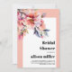 Esta invitación de despedida de soltera muestra una rama de rododendro en la esquina superior izquierda de un marco blanco adornado con delicadas flores de color rosa melocotón y bordeado por un suave color rosa melocotón. El texto de la invitación se presenta en una tipografía en negrita, lo que lo hace destacar y fácil de leer. Los bordes de color rosa melocotón que enmarcan la invitación en tres lados complementan perfectamente el tema floral, creando un aspecto cohesivo y visualmente atractivo para el evento.