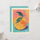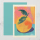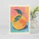 Esta imagen vibrante presenta un naranja colorido y estilizado con hojas verdes, ambientado con un fondo rosa y naranja vivo. La obra de arte tiene un toque pop moderno y lúdico.