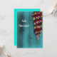 Envía alegría navideña a amigos y seres queridos con esta tarjeta que presenta mi ilustración de una ristra de chile con luces navideñas contra una puerta turquesa.
