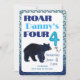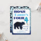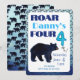Roar Four Bear 4th Birthday Invitation. This handsome black bear illustration is perfect for big guy’s fourth birthday party. Gather up your family and friends and celebrate the fourth year. Your big boy is turning four. He loves bears! Growl and roar your way though party fun. Make his birthday Beary awesome with pin the tail on the bear and other growly bear games.