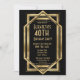 Invitación Roaring 20 Art Deco Black | Oro 40 cumpleaños