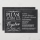 Moda de estilo vintage de ostras asadas con diseño de poster de tipografía vintage a la moda con fondo de pizarra.