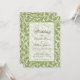 Esta invitación botánica tiene un patrón de hojas de roble verdes y bellotas en el fondo y en la parte posterior. El texto está en un rectángulo blanco transparente. Todo el texto es gris y se puede personalizar. La ocasión "Boda" y los nombres están escritos en una elegante escritura caligráfica, el resto en mayúsculas.