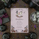Esta Invitación de Baby Shower Gothic Purple Rocking Horse Rock a Bye presenta ilustraciones dibujados a mano de un caballo victoriano de madera mecedora, cuervo negro, rosas, flores silvestres, follaje, telarañas y murciélagos voladores, todo ello con un elegante fondo lila rosa. La parte trasera es de color casi negro. Todo el texto es editable.