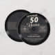 Una elegante plantilla de invitación a la fiesta de cumpleaños con temas musicales, divertida, en forma de un disco de vinilo con notas musicales, que presenta un fondo negro y gris con textura y el título "Vamos a rodar 50 años". Puede editar esta plantilla por completo. ¡Una invitación perfecta para una fiesta de cumpleaños para un hombre que ama el rock, la música y las guitarras, en su 50° aniversario! Papá, marido, abuelo...
