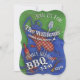 Invite a sus amigos y familia a su barbacoa siguiente de la reunión de familia con esta invitación caprichosa que ofrece un ilustracion de un delantal del dril de algodón y de las herramientas de la cocina, incluyendo una espátula del Bbq y una bifurcación, rociando el cepillo, la botella de salsa caliente, pimientas de chile rojo y un mitón rojo del horno de la guinga. Una textura de madera da a arte una mirada apenada. Personalice con todos los detalles de su Bbq de la reunión. Apoye de la invitación es un modelo rojo de la guinga. Diseñado por el ©Tim renombrado Coffey del artista del mundo.