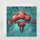 INVITACIÓN ROJAS ROSAS DE CORAL, AZUL ACUÁTICO DAMASCO NEGRO