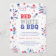 Invitación Rojo blanco y barbacoa 4 de julio fuegos artificia