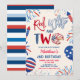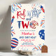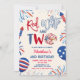 Invitación de cumpleaños rojo blanco y dos patrióticos, Invitación de cumpleaños para niños con tema americano, Invitación de cumpleaños 2º patriótica editable de EE. UU.