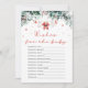 La ducha de bebé de Santa Rojo agrega un toque encantador de diversión festiva y alegría navideña a tu celebración. Con un diseño adorable con copos de nieve rojos, vegetación de eucalipto y ropa de bebé con tema de Santa, este juego invita a los invitados a compartir sus deseos y consejos sinceros para el pequeño. Es una forma dulce de crear recuerdos duraderos, generar risas y llevar un elemento cálido y alegre a tus festividades de baby shower.