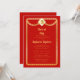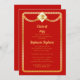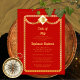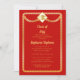 Un tope de graduación de oro y el marco serpentino redondeado de tono dorado y diseño de invitación a fiesta de graduación roja que puede ser personalizado para graduaciones de secundaria, universidad, universidad o escuela vocacional. Diseño compuesto por Holiday Hearts Designs (derechos reservados).