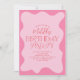 Invitación de cumpleaños retro de tipo negrita color rojo rosa giratorio moderno y ondulante.