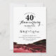 Invitación de aniversario de 40 años Rojo Rubí. Elegante diseño formal con fondo de mármol de ágata, dorado con brillo falso y fuente de letra script. Tarjeta de invitación de moda perfecta para una celebración de aniversario de bodas con estilo. Impresiones de invitaciones de Zazzle o plantilla digital descargable instantáneamente.