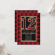 Invitación Rojo Rústico Plaid de Búfalo Negro Cumpleaños 12