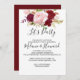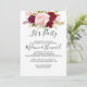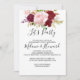 Este rojo tropical y romántico vamos a celebrar la invitación es perfecto para un compromiso rústico. El artístico diseño del marsala incluye acuarelas, rosas verdes, rosas, borgoñas y ruidosos, decorados con plantas verdes y cuidadosamente distribuidos en un elegante y radiante ramo de flores. Esta invitación puede ser usada para una fiesta de compromiso, fiesta de retiro, ducha de bebé o cualquier evento!