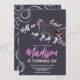 Invitación Rolling Skates Black Kitten Rainbow Birday Party