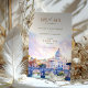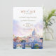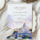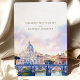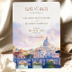 Anuncie a su boda con estilo con esta elegante invitación "Save the Date", que incluye un ilustracion acuático de la Basílica de San Pedro y el icónico puente sobre el río Tíber en Roma, Italia. Los tonos suaves de lavanda, el rosa pastel y el cielo azul crean un ambiente romántico y artístico, perfecto para una boda de destino. La refinada tipografía y el pintoresco entorno capturan la belleza intemporal de Roma, dándole a los huéspedes un adelanto de la inolvidable experiencia que les espera. Ideal para parejas que planean un boda en la Ciudad Eterna.