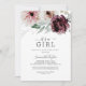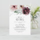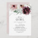 Este romance floral es una invitación a la ducha de bebé chica, perfecto para una elegante ducha de bebé. El moderno diseño rústico de boho cuenta con románticas flores acuáticas en tonos suaves de burdeos, malva, rosa y crema blanca con hojas verdes.