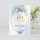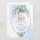 Invitación Romantic Blue Hydrangea Gold Floral 80th Birthday