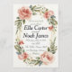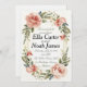 Soft blush and peach floral wedding invitation with watercolor roses and greenery wreath, featuring fully editable couple names, wedding date, venue, and RSVP details for a romantic garden or rustic chic celebration.