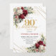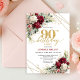 Invitación Romantic Deep Red Gold Floral 90th Birthday Invite