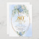 Invitación Romantic Dusty Blue Floral Gold 80th Birthday