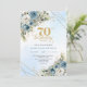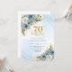 Invitación Romantic dusty blue florals gold frame 70 birthday