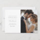 Celebra tu día especial con nuestra invitación a la Boda de Fotos Romántica Elegante 2. Con un diseño blanco y negro intemporal, esta invitación es perfecta para bodas rústicos minimalistas. La distribución doble incluye una bonita foto de la pareja, que aporta un toque romántico y de diseño.