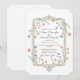 A romantic wedding invitation design featuring a delicate gold ornamental frame surrounded by soft watercolor florals. Gentle blush, peach, and blue flowers with flowing greenery create a graceful garden-inspired aesthetic. The elegant typography and balanced layout evoke a timeless, storybook charm, making this design perfect for classic, botanical, and romantic wedding themes with a refined vintage touch.