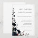 Elegant dark wedding design featuring deep red and black flowers with grey botanical accents. This moody and sophisticated aesthetic is perfect for fall or winter weddings. Easily customize all text templates with your names, date, venue, and reception info.