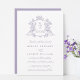 Elegant lavender floral crest wedding invitation with monograms, perfect for a modern classic or romantic vintage wedding. For more advanced customization of this design, please click the BLUE DESIGN TOOL BUTTON above! Matching items are also available.