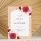 Make a bold and romantic statement with this elegant red rose floral wedding invitation. Lush red and soft blush roses frame a graceful arch-shaped center panel, creating a luxurious focal point that feels both classic and refined. Subtle golden accents and a soft patterned background add warmth and depth without overpowering the sophisticated layout.