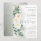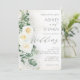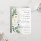 This romantic sage green wedding invitation features soft white roses, eucalyptus greenery, and delicate gold accents for an elegant and timeless celebration. Perfect for garden weddings, botanical themes, and soft neutral wedding palettes.