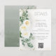 This romantic sage green wedding details card features soft white roses, botanical greenery, and subtle gold accents for an elegant and cohesive wedding suite. Perfect for sharing reception details, accommodations, and additional event information.