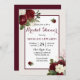 Romántica ducha de novia floral borgoñona invita a hermosas rosas blancas y rojas borgoñosas adecuadas para todas las temporadas