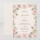 Esta elegante invitación a la boda exhibe un bonito diseño floral pastel con rosas rosa y marfil enmarcados en los detalles. Esta invitación, que presenta tipos de letra serif clásicos y elegantes, es perfecta para una celebración boda romántica, atemporal y sofisticada. Personalízalo fácilmente con sus nombres, fecha y lugar.