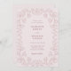 Romántica invitación a la boda rosada de Rubor. Romántico e intemporal, esta invitación a bodas rosa y ondulante cuenta con rosas florales de arte de línea vintage dispuestos en un marco de moda que se puede usar para cualquier temporada de boda. Añada un toque de elegancia moderna y clásica a su día especial con estas elegantes y hermosas invitaciones a bodas. Rosa de texto polvoriento sobre un fondo rosa pálido.