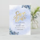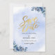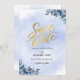 Comparte tu historia de amor con esta romántica boda floral azul salva la fecha. Delicadas flores azules y suaves detalles de escritura crean un diseño atemporal que sus huéspedes adorarán. Perfecto para bodas elegantes, de jardín o de destino, fácil de personalizar para su día especial.