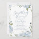 Moderna caligrafía guión de ducha de novia rodeado de acuarela floral en azul polvoriento y verde sabio, elegante y romántico, gran cosa azul Invitaciones a ducha de novia para boda moderno, boda romántico y bodas botánicas en primavera y verano. Vea todas las piezas coincidentes de la colección.