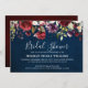Elegante y moderna invitación de boda romántica de aquarela floral para ducha de novia que presenta un ramo de rosas de burdeos / marsala, rosa suave, púrpura, durazno con follaje a juego sobre fondo azul marino. Perfecto para una boda de otoño / mediados de verano. Por favor, busque más diseños y variaciones coincidentes en mi tienda "blissweddingpaperie". Y no dude en contactarme para una mayor personalización o artículos coincidentes