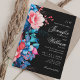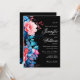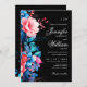Invitación Romántico Boda Floral Elegante Script Azul Negro