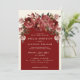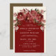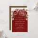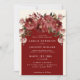 Flores borgoñonas y rojas elegantes con rosas rosas rosas rubias invitadas a una boda floral.. Los detalles bodas están escritos con letras modernas, enmarcados en un marco ovalado de blanco polvoriento con flores acuarelas y follaje botánico en tonos tierra inspirados en el desierto, con color burdeos, rojo, marrón y marfil con un texto de cobre cálido.El toque de marco vintage convierte a esta invitación floral vintage perfecta a la floral vintage invitación a bodas rojas para bodas de verano, primavera y invierno.