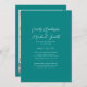 Hojas de teal, estilo de letra manuscrita, foto, código QR para RSVP, invitación de boda.
