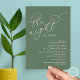 Fije el tono para una noche inolvidable con nuestra tarjeta de invitación "La noche anterior". Acepta la elegancia moderna e invita a sus seres queridos a unirse a usted para una memorable celebración romántica pre-boda. Con diseño elegante y escritura, en el esquema verde sabio del bosque, esta invitación promete una noche de anticipación y alegría.