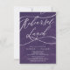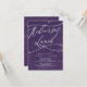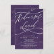 Esta romántica invitación a almorzar con una acuarela morada es perfecta para un simple ensayo boda. El moderno diseño clásico presenta vistosos remolinos y florituras con una preciosa y elegante tipografía con letras a mano.