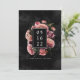 Romántico y monótono, esta boda formal Save the Date es perfecta para una moderna y elegante boda. El diseño floral de Moody cuenta con un ramo natural de rosas rosas rosas rubias y un impresionante ranunculus con hojas verdes oscuras en un marco de lujo sobre un fondo de color negro oscuro. En la parte posterior de la tarjeta de fecha guardar se muestra un fondo floral de coordinación sobre negro. Todo el texto es personalizable.