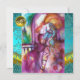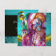 Escena del balcón de la tragedia Romeo y Julieta de William Shakespeare .Pintura original contemporánea en acuarela con hoja de oro , plata y colores iridiscentes en púrpura brillante , rosa , verde , naranja amarillo , azul cyan , turquesa , blanco .Pintura de Bulgan Lumini (c).Esta tarjeta genial y artística es perfecta para bodas , fiestas de compromiso , fiestas de aniversario , bailes de disfraces , compromisos románticos , anuncios de "save the date" , cócteles , celebraciones , aniversarios , reuniones ,